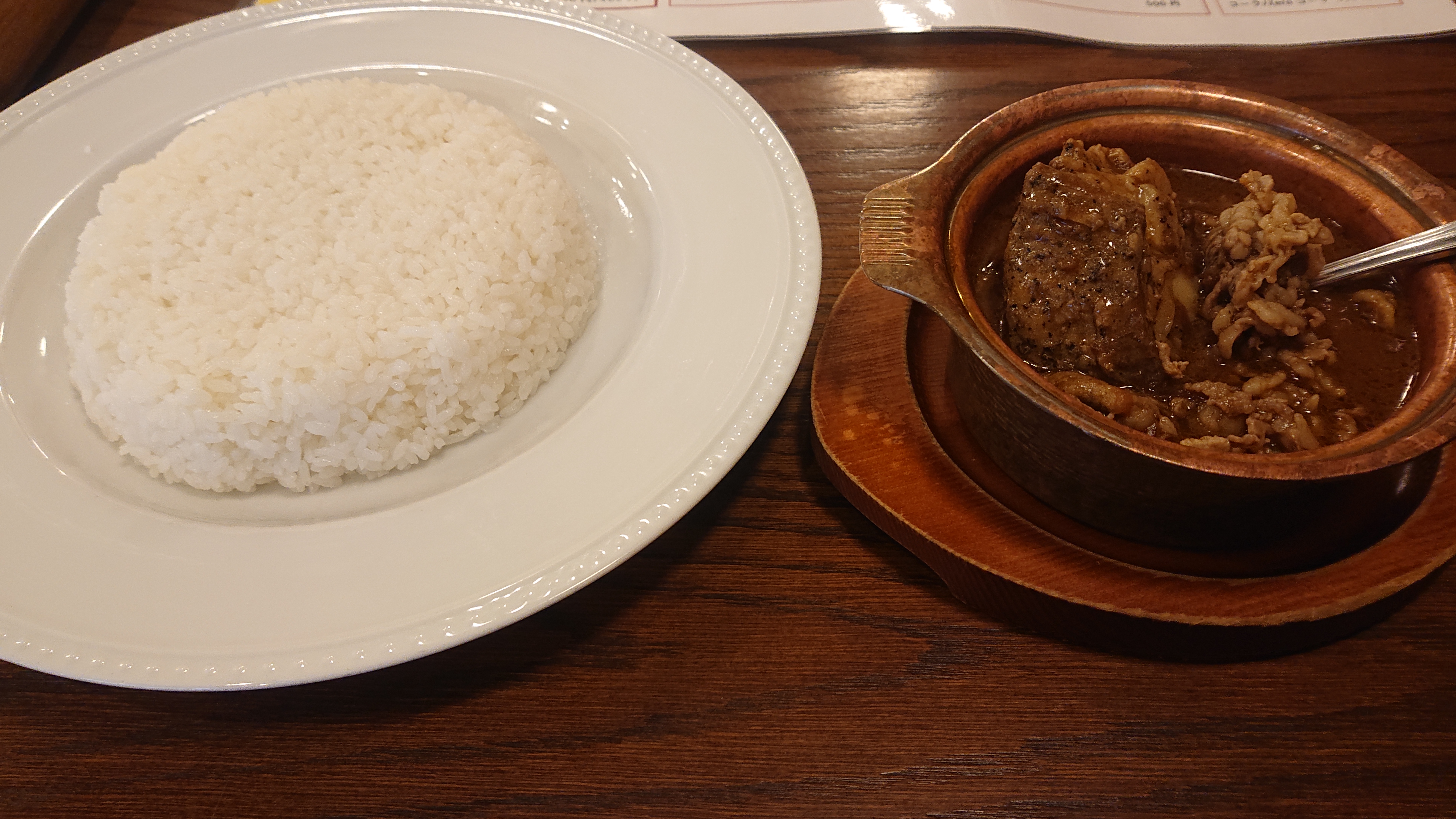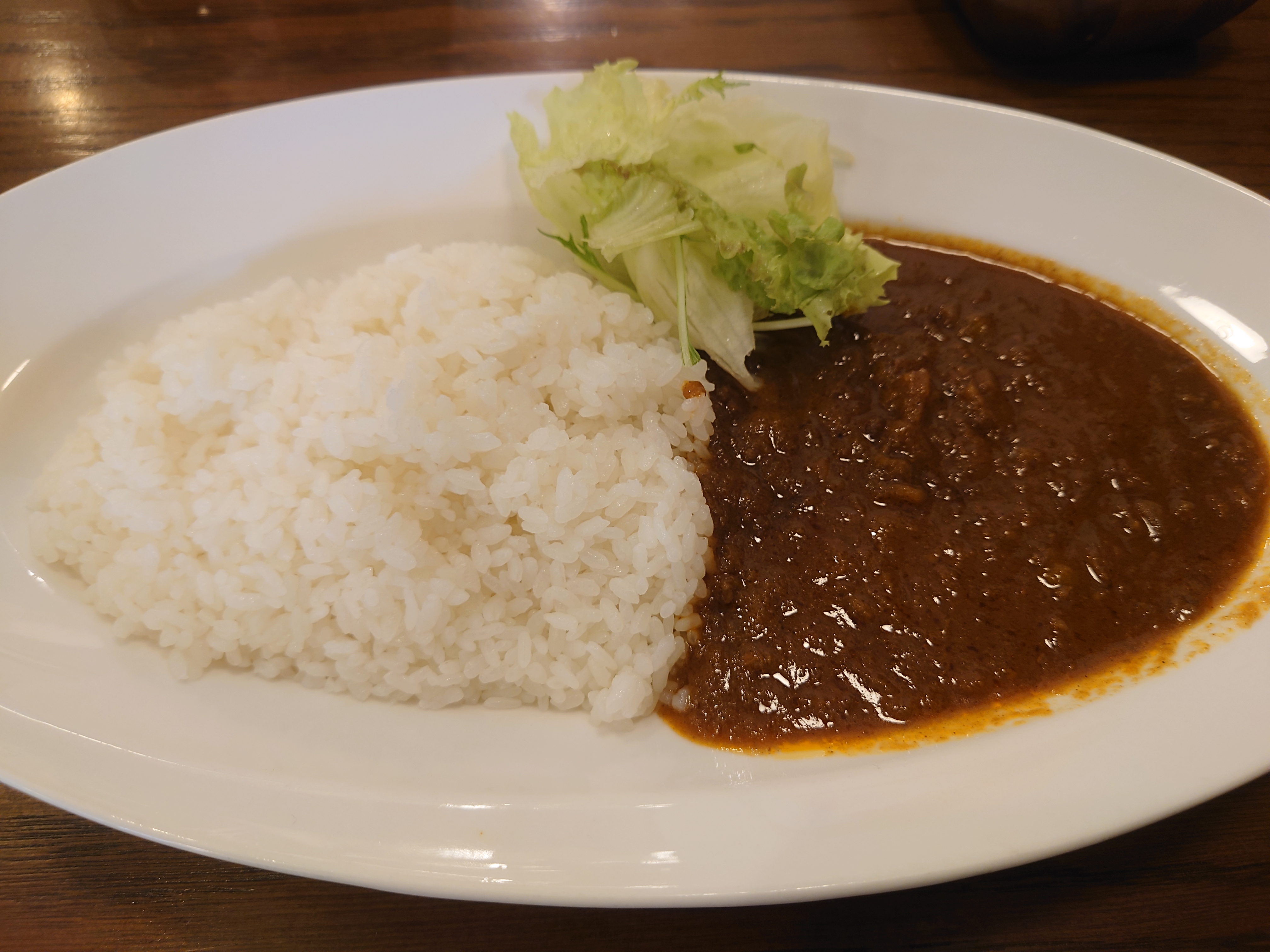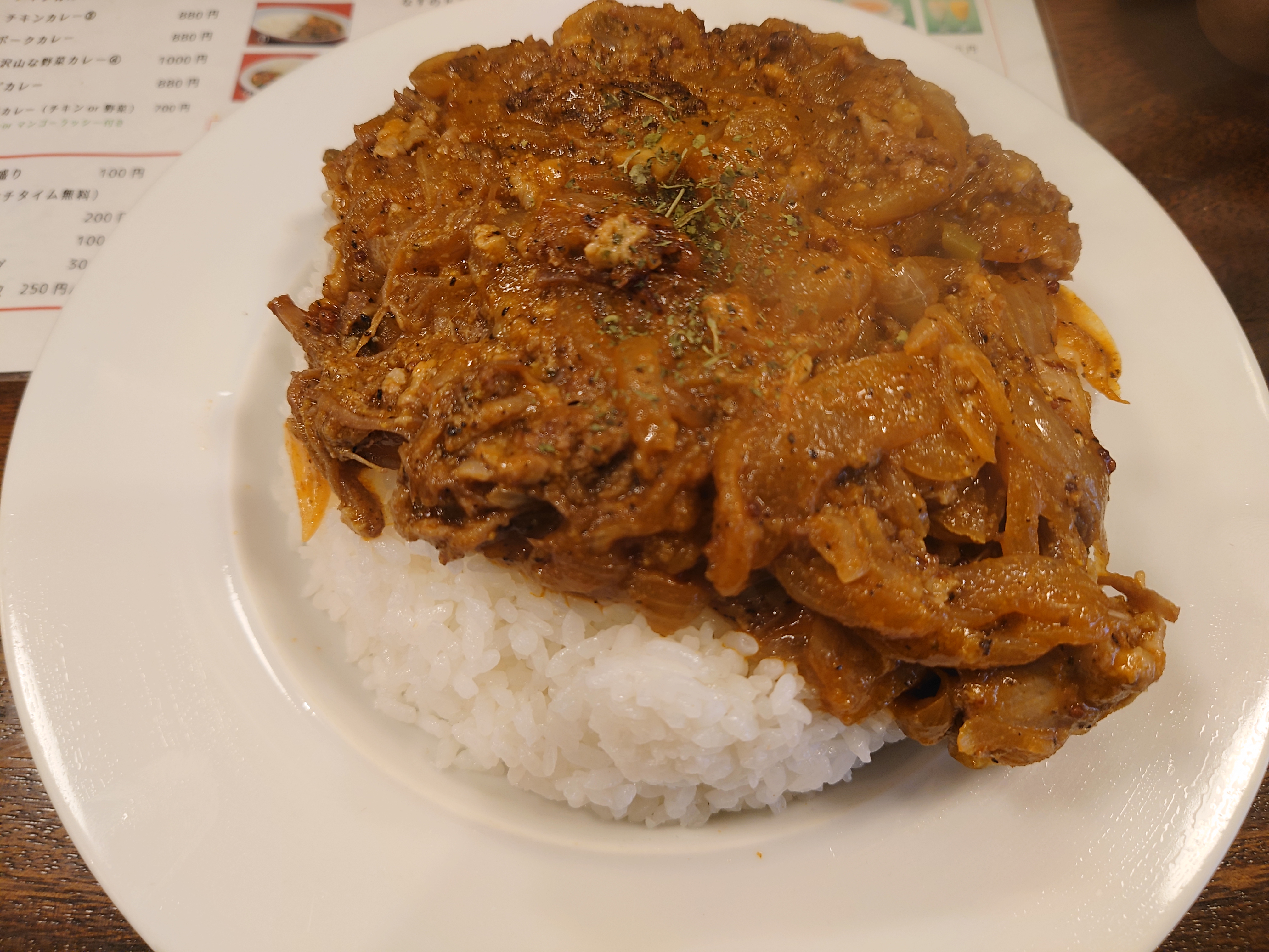 この日はいつも通りキーマカレーでも……と思っていたのですが、「リピーター続出!?」と書いてある店内ポップを見て、なんとなく軽い気持ちで注文しました。