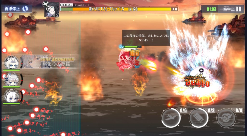 現在、META蒼龍が登場していますが、Tier15(Lv126)のMETA戦になると何回も挑んで時間をかけるのがダルいので、1戦でなるべく多くのダメージを与えて少ない戦闘回数で終わらせたいものです。