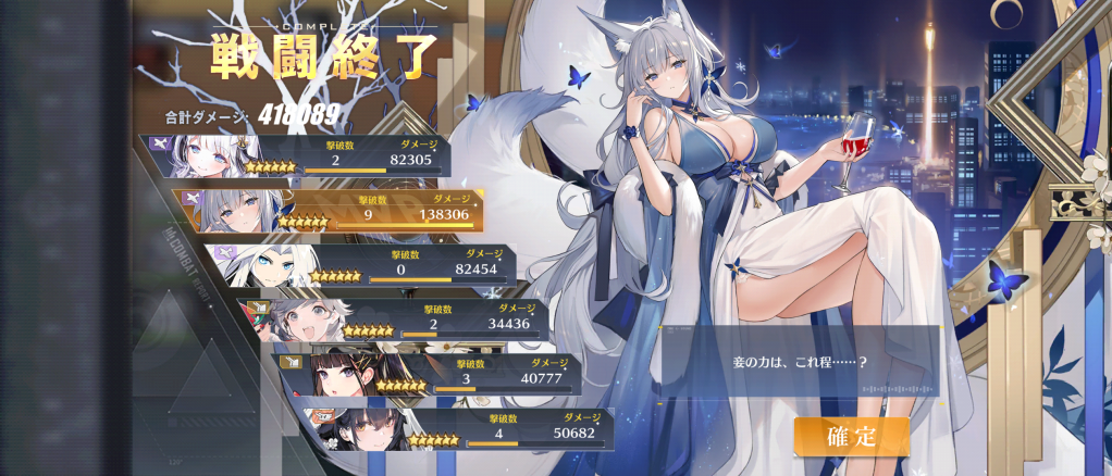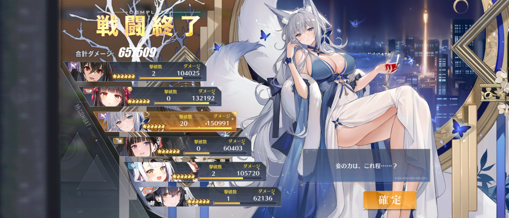 まず主力が軒並み10万以上のダメージを出しています。さらにどうかと思っていた島風も10万超え!吾妻よりも出してるじゃないですか…