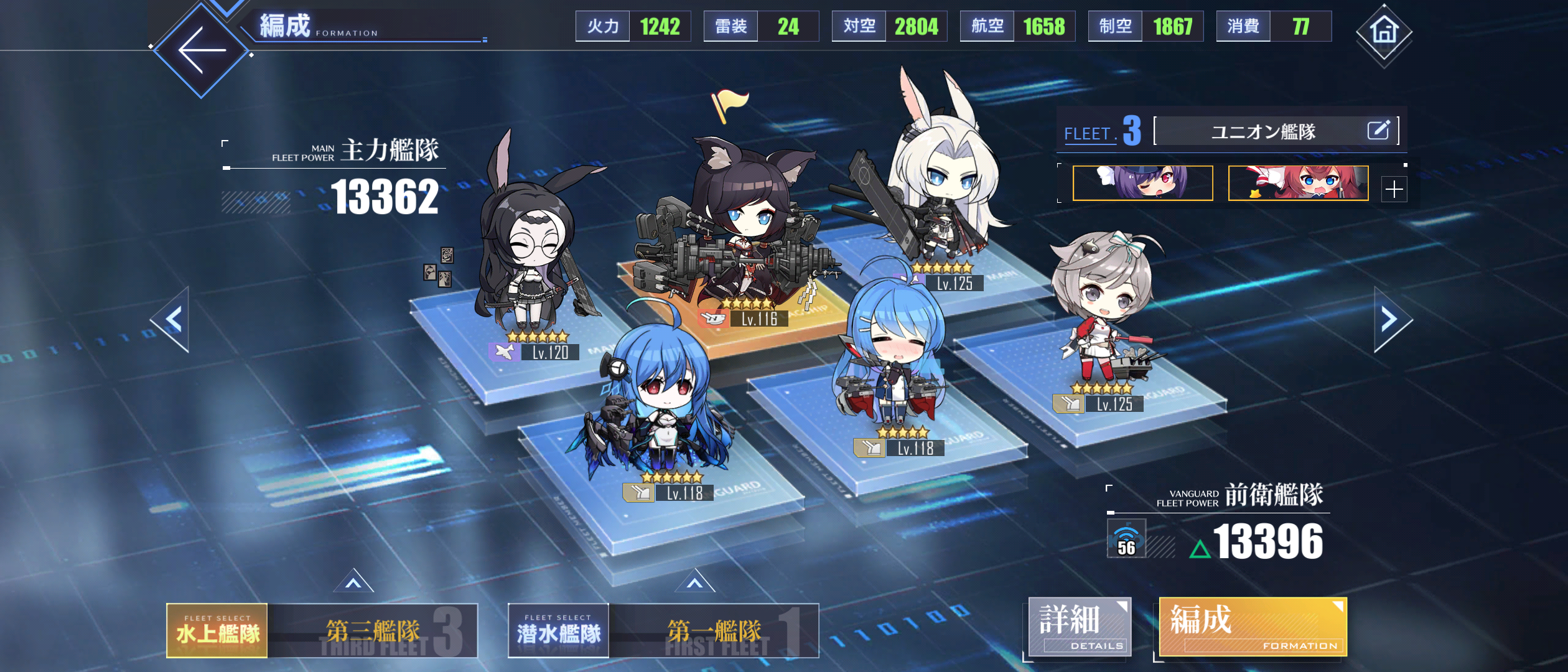 島風と大鳳がLv125になっていれば70万までは行かずとも、もう少し与ダメが期待できるかもしれません。