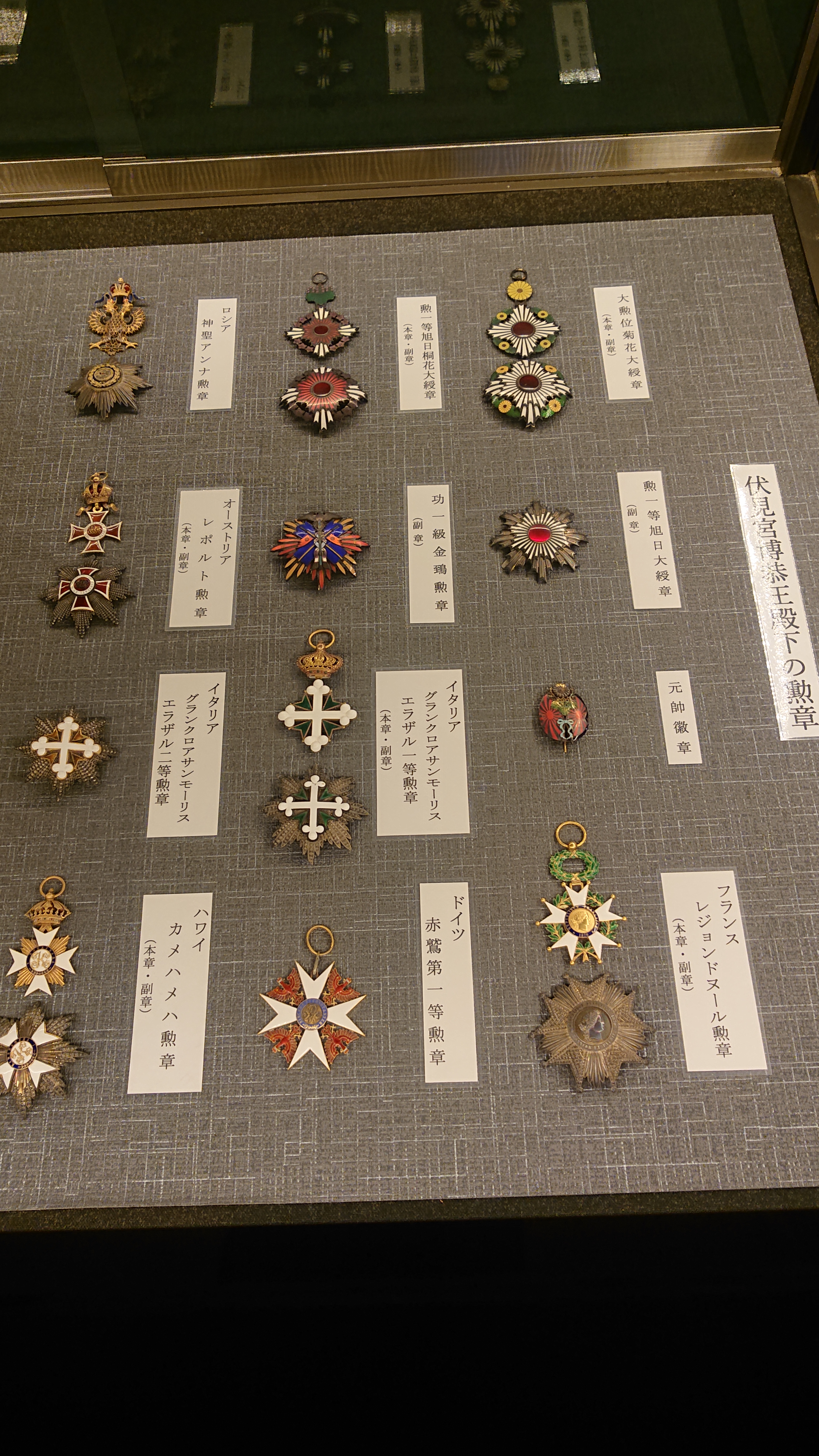 船内に入ると艦船模型や勲章など、三笠に関係する数々の物品が展示されています。