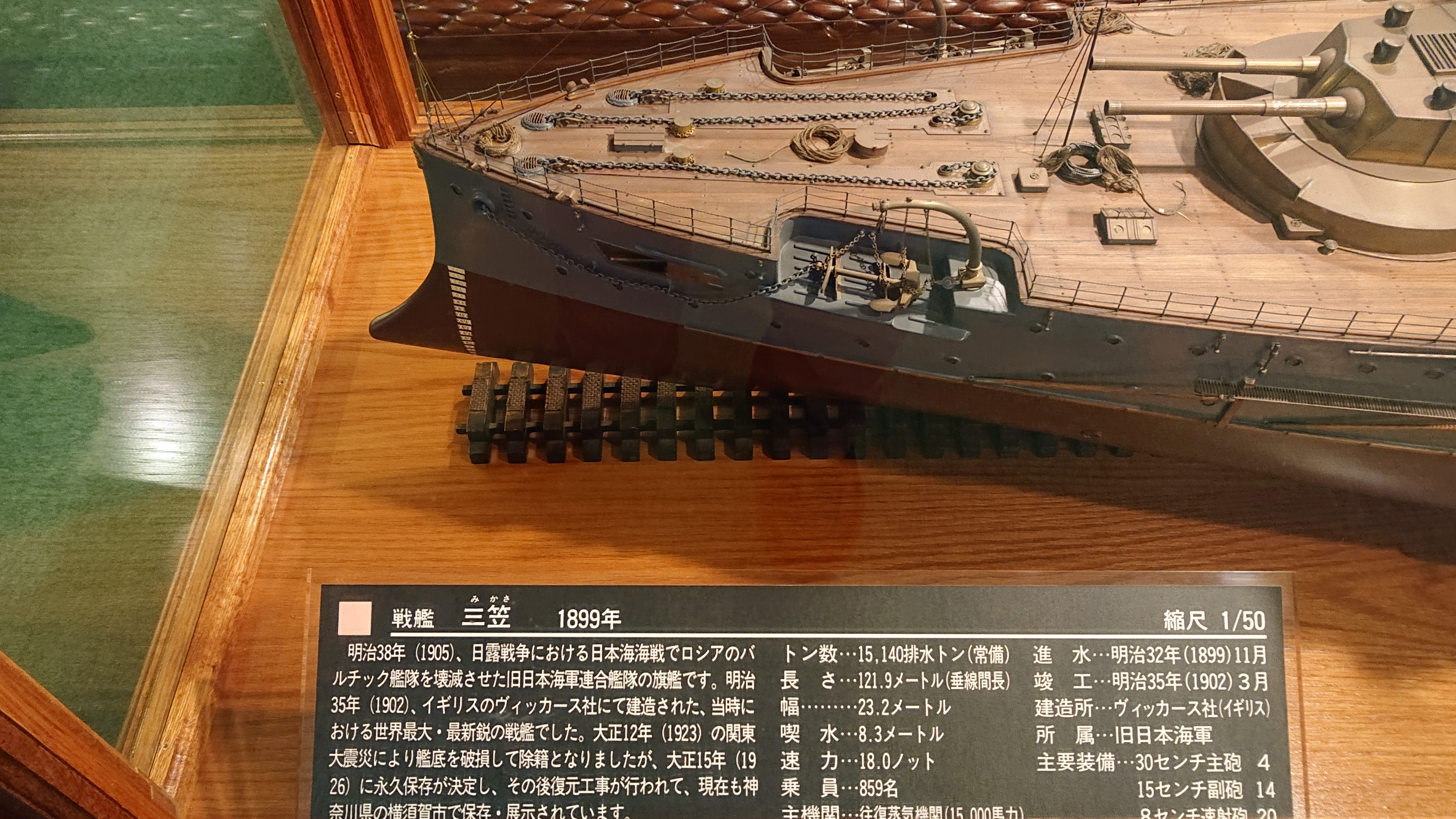 今から約120年前に建造された、中学あたりでも習うであろう歴史的な戦争・日露戦争で日本軍の旗艦を務め、また世界で唯一現存する前弩級戦艦(初期形態の戦艦)です。