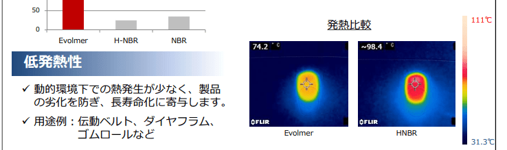 またデンカは高耐熱・耐油性を持つ「エチレン・酢ビ・アクリル酸エステルの共重合体」の特殊ゴム「デンカER」という製品もありますが、このEvolmerに関しては全然知りませんでした。