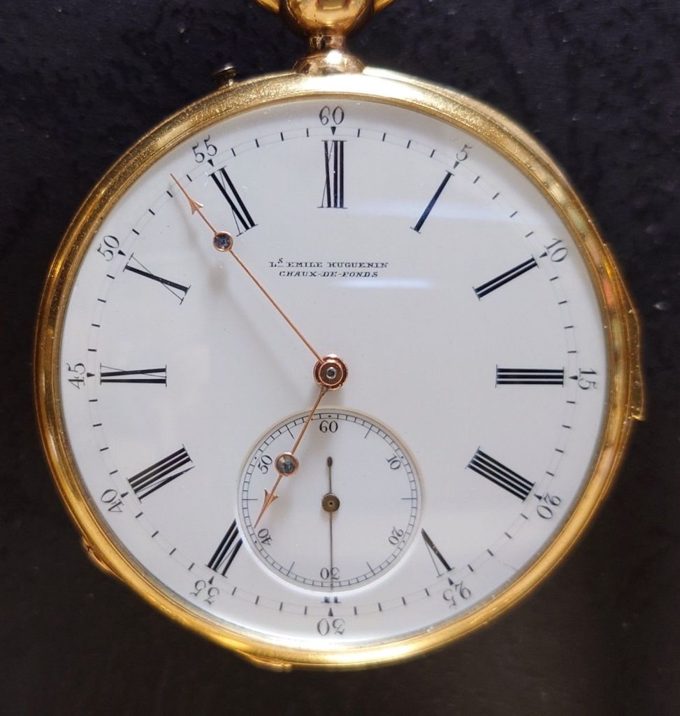私が所持するこの Louis Emile Huguenin については、時計のクオリティの高さから見るに、おそらく宮廷時計師レベルのだったと思われる。